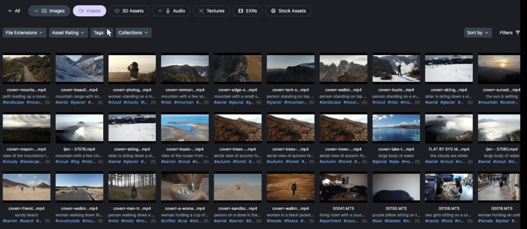 Ogni giorno ci ritroviamo a cercare tra migliaia di file e spesso perdiamo tempo prezioso nel trovarne uno in particolare. Con Shade, questo problema è in gran parte risolto. Questo strumento, infatti, grazie all’Intelligenza Artificiale, è in grado di cercare tra foto, video e asset vari, senza che sia necessario inserire il nome del file. Basterà descrivere il contenuto che stiamo cercando per trovarlo. Se ad esempio scriviamo “montagna vista da drone” nella categoria video, troveremo subito le clip che ritraggono montagne dall’alto.